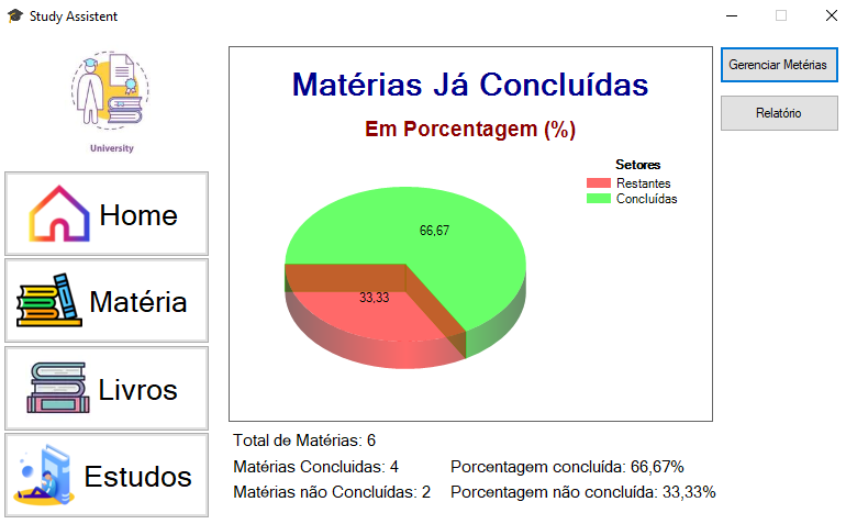 É um software feito em C# com gráficos e relatórios em pdf para ajudar o estudante a jerenciamento suas materias.